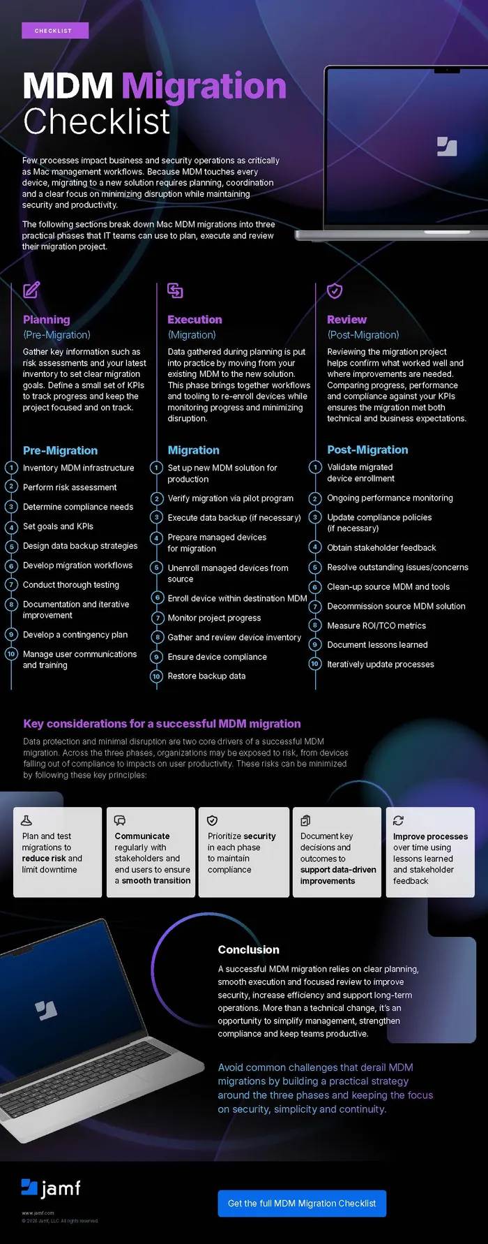 Successfully navigating an MDM migration requires more than just technical execution – it’s a strategic opportunity to strengthen security, streamline workflows and maximize ROI, among other key business initiatives. Our MDM Migration Checklist Infographic, geared toward IT, provides a clear, actionable plan that’s essential to driving your MDM migration plan’s success.