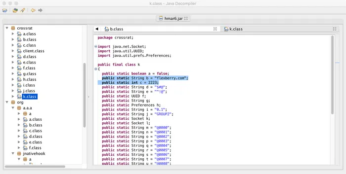 On macOS systems, CrossRAT persists as a launch agent, via the b/c.class