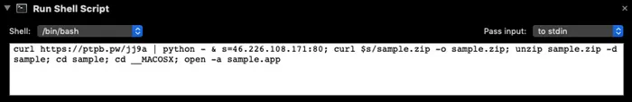 “This script is designed to download and execute a Python script, then download and run an app named sample.app.