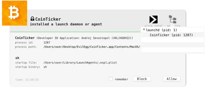 And sure enough, executing the malicious application generates a BlockBlock persistence alert: