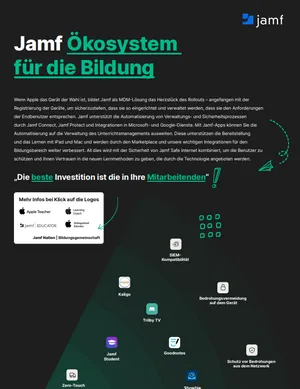 Wir liefern Ihnen alle Informationen zum umfassenden Jamf Ökosystem für die Bildung, das perfekt auf Ihrer bereits vorhandenen Gerätebasis aufbaut – für ein erstklassiges Nutzererlebnis, von dem alle profitieren.