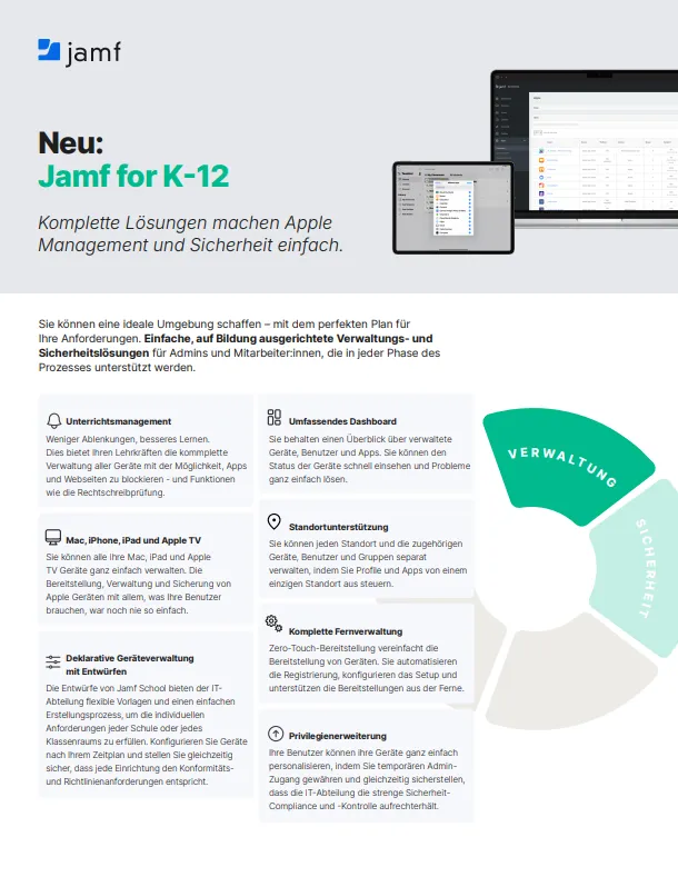 Lernen Sie Jamf kennen: Die umfassendste Lösung für die Verwaltung und den Schutz von Apple Geräten.