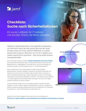 Diese Checkliste hilft IT-Admins und SecOps-Teams, Risiken im gesamten Lebenszyklus des Macs schnell zu erkennen - von der Bereitstellung und Identität bis hin zum Endpunktschutz und Konformität.