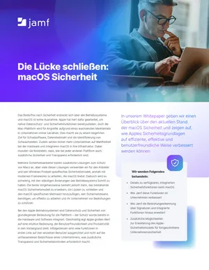 Wenn Sie das Whitepaper herunterladen, erfahren Sie, wie ein einheitlicher, auf Apple ausgerichteter Ansatz Ihren Teams dabei hilft, Risiken früher zu erkennen, einheitliche Sicherheitskontrollen durchzusetzen und Mac Umgebungen zu schützen, während sie wachsen.