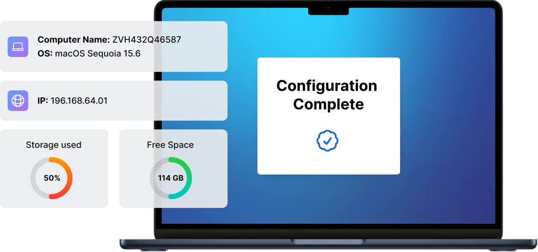 Bénéficiez d’une méthode simple et unifiez pour la configuration, l’inscription et le déploiement des appareils à grande échelle, et donnez aux utilisateurs un accès au suivi de la santé du parc, à l’inventaire et à l’assistance.