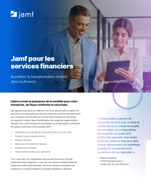 Téléchargez ce document pour découvrir comment Jamf accélère la transformation mobile dans le secteur des finances.