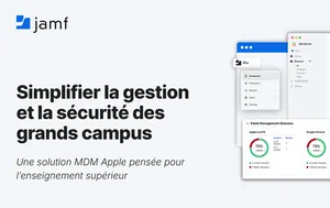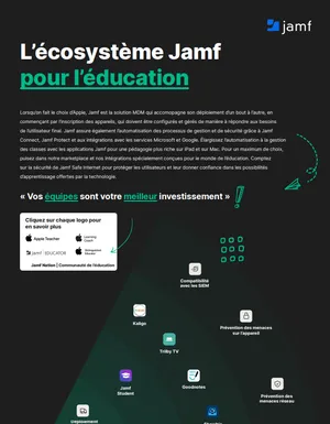 Explorez l’écosystème complet de Jamf pour l’éducation : des produits pensés pour vous aider à exploiter tout le potentiel de votre flotte d’appareils et à offrir la meilleure expérience à vos utilisateurs finaux.