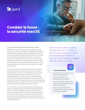 Téléchargez le livre blanc pour découvrir une approche unifiée et centrée sur Apple, conçue pour aider les équipes à détecter les risques au plus tôt, à appliquer des contrôles de sécurité cohérents et à protéger l’environnement Mac pour accompagner sa croissance.
