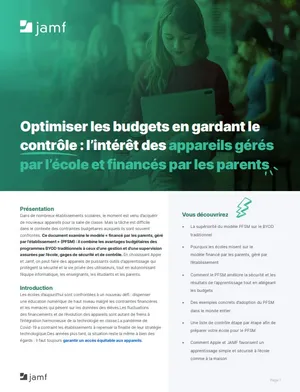 Les établissements scolaires tiennent à mettre en place des programmes d’appareils individuels ou à les maintenir, mais les budgets serrés obligent les responsables informatiques à trouver de nouvelles stratégies. Le modèle financé par les parents et géré par les établissements scolaires (PFSM) constitue une approche durable. Il offre les avantages économiques du BYOD, accompagné de la supervision, de la cohérence et de la sécurité dont les écoles ont besoin pour un apprentissage ciblé.