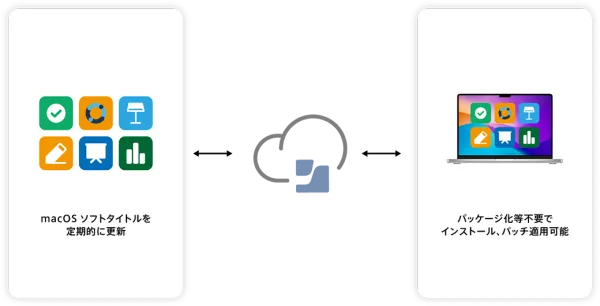 Mac App Storeにあるアプリも、そうでないアプリも、業務に必要なアプリケーションを⾃動で配信・インストール。