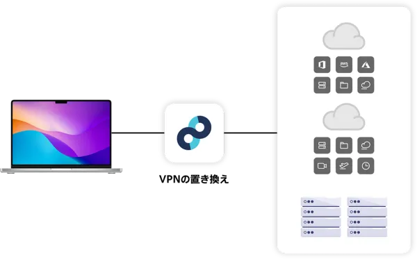 社内でも、社外でも、どこにいてもVPNの操作不要で、従業員のアクセスが安全に。デバイスのセキュリティ状態に応じたアクセス制御も可能で重要データを守ります。