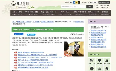 那須町は、一人一台iPadの導入の意義や保護者向けパンフレット、 iPad利用のルールなどの資料をホームページで公開しています。 https://www.town.nasu.lg.jp/0028/genre1-1-001.html