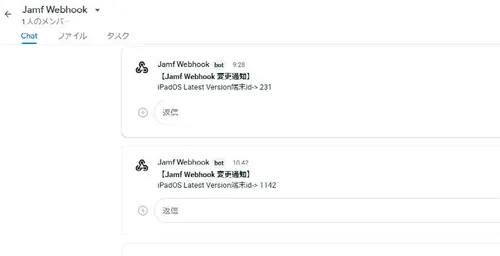Jamf ProのWebhook設定を利用して、iPadのOSがアップデートされたらGoogle Chatへ通知が届くようにすることで、アップデート状況の把握を容易に しています。