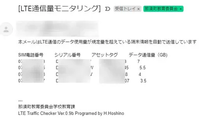 Jamf Pro APIを活用した独自のプログラムを作成し、LTEのデータ使用量が一定の値を超えたデバイスを抽出。そのリストを各学校の管理職の先生方に配布することでLTEの使い過ぎを防止しています。