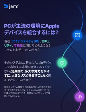 そのシステムに、新たにAppleデバイスを追加する場面を考えてみてください。短期間で、多大な労力をかけずに、大きなリスクを冒すことなく追加できるでしょうか?