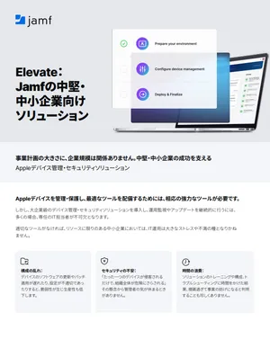 Elevateは、中堅・中小企業のお客様のために開発されたJamfプラットフォームベースのソリューションです。