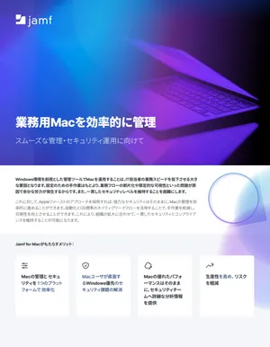Macの導入が進むにつれて、デバイスの管理と保護のための優れたソリューションを確保することが急務となってきます。業務フローの断片化、手作業によるプロセス、そして限定的な可視性といった問題が原因で業務効率が落ちるほか、セキュリティの一貫性を維持するのも困難だからです。