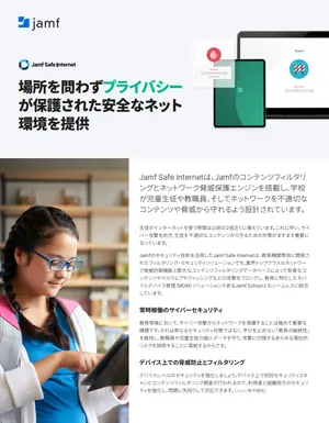 Jamfが誇る高度なフィルタリングとネットワーク脅威保護技術を、教育専用に最適化。Jamf Safe Internetは、あらゆる有害なオンラインコンテンツから児童生徒を確実に保護します。