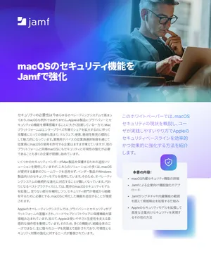 ぜひホワイトペーパーをダウンロードして、JamfのAppleファーストの統合アプローチが、リスクの早期検出、一貫したセキュリティ対策の適用、拡大するMac環境の保護にどのように役立つかをご確認ください。