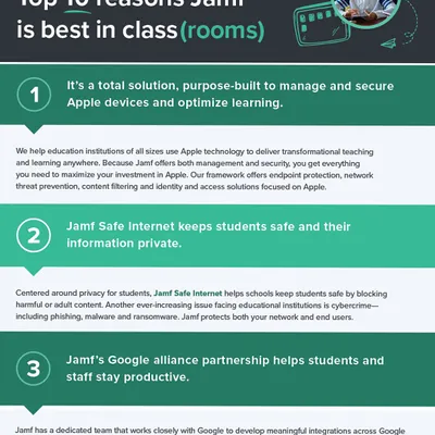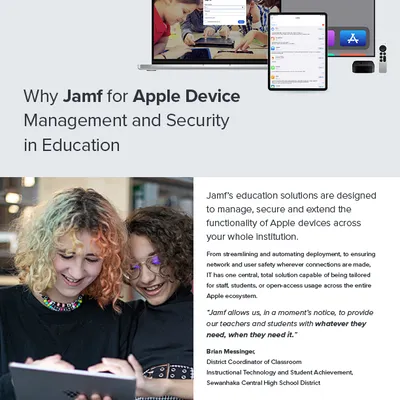 Explore Jamf enhancements for schools, students, and parents—simplifying and securing learning with Apple devices. We're excited about the latest developments in Jamf School, offering customized learning experiences, stringent security to protect students and teachers, and new App Installers that free up precious time for IT administrators. Discover stories from the field where Jamf's solutions are making a real difference, enhancing classroom interaction and providing seamless device management.