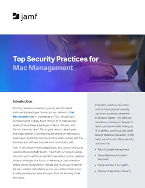 This white paper outlines the essential security practices for building a secure, scalable Mac environment. It starts with the three foundational solutions every Mac program needs, MDM, identity and access management and endpoint security, then breaks down key practices across seven categories.