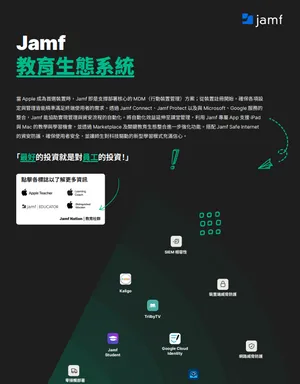 探索完善的 Jamf 教育生態系統,讓您能在現有的裝置基礎上持續擴展,為終端使用者打造卓越體驗。