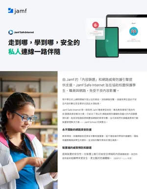 Jamf Safe Internet 採用 Jamf 專業的內容篩選與網路威脅防護引擎,專為校園設計,致力於保護未成年學生免受不良資訊的侵害。