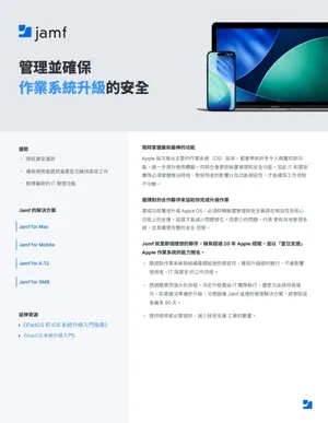下載 PDF,以了解 Jamf 如何為您提供託管且安全的作業系統升級之相關資訊。